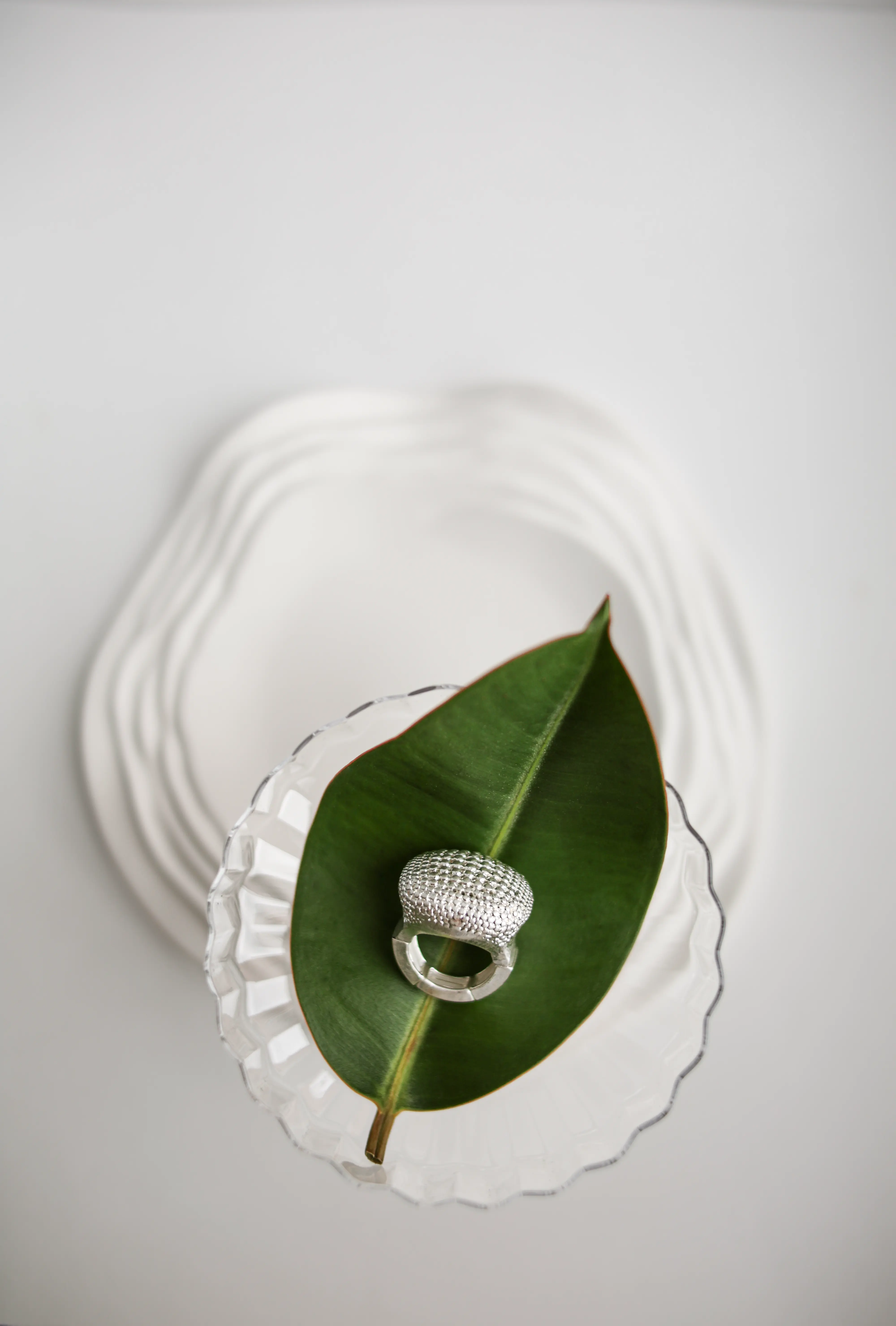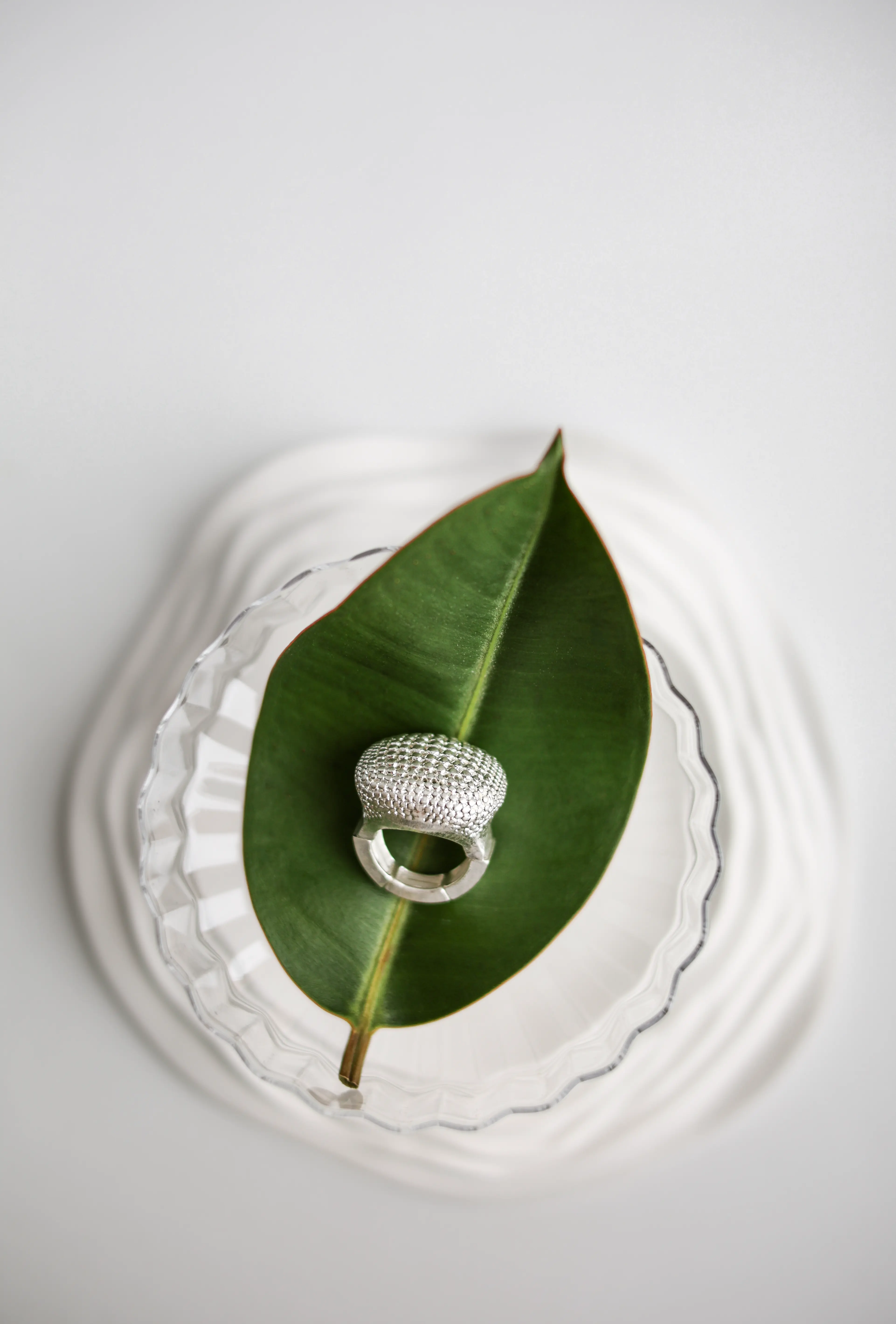 Кольцо Вирджиния обладает невероятно ярким характером и выразительным масштабом — это одно из самых крупных украшений этого типа в коллекции Mi Alegria. Благодаря эффектному сложному дизайну оно мгновенно обращает на себя внимание окружающих. Поверхность перстня усыпана мельчайшими металлическими шариками серебристого цвета, уложенными в красивый паттерн. Они придают украшению интересную объемную фактуру, чем-то напоминающую фасеточные глаза стрекоз. Такое кольцо станет самым ярким акцентом вашего роскошного выходного образа.