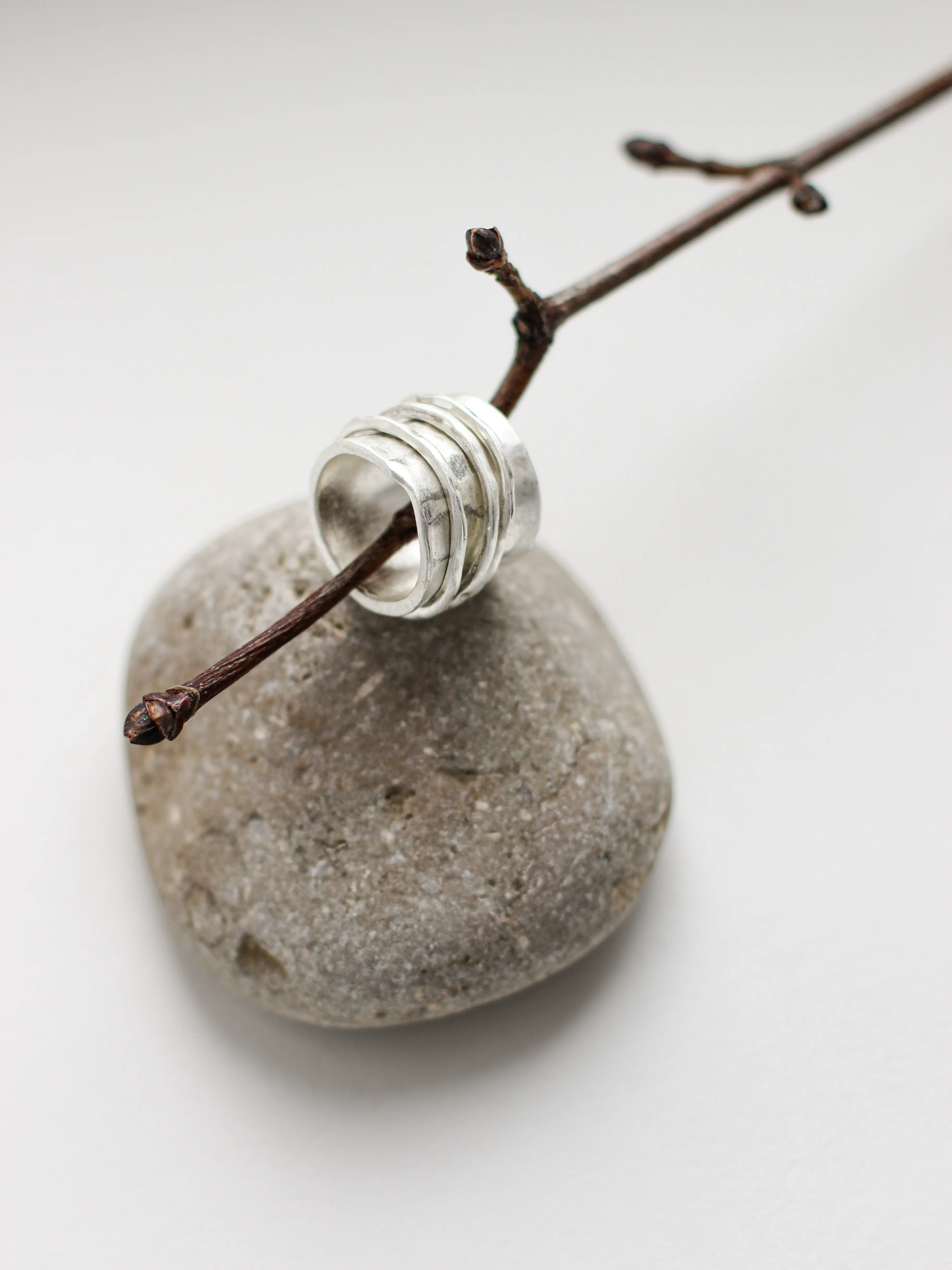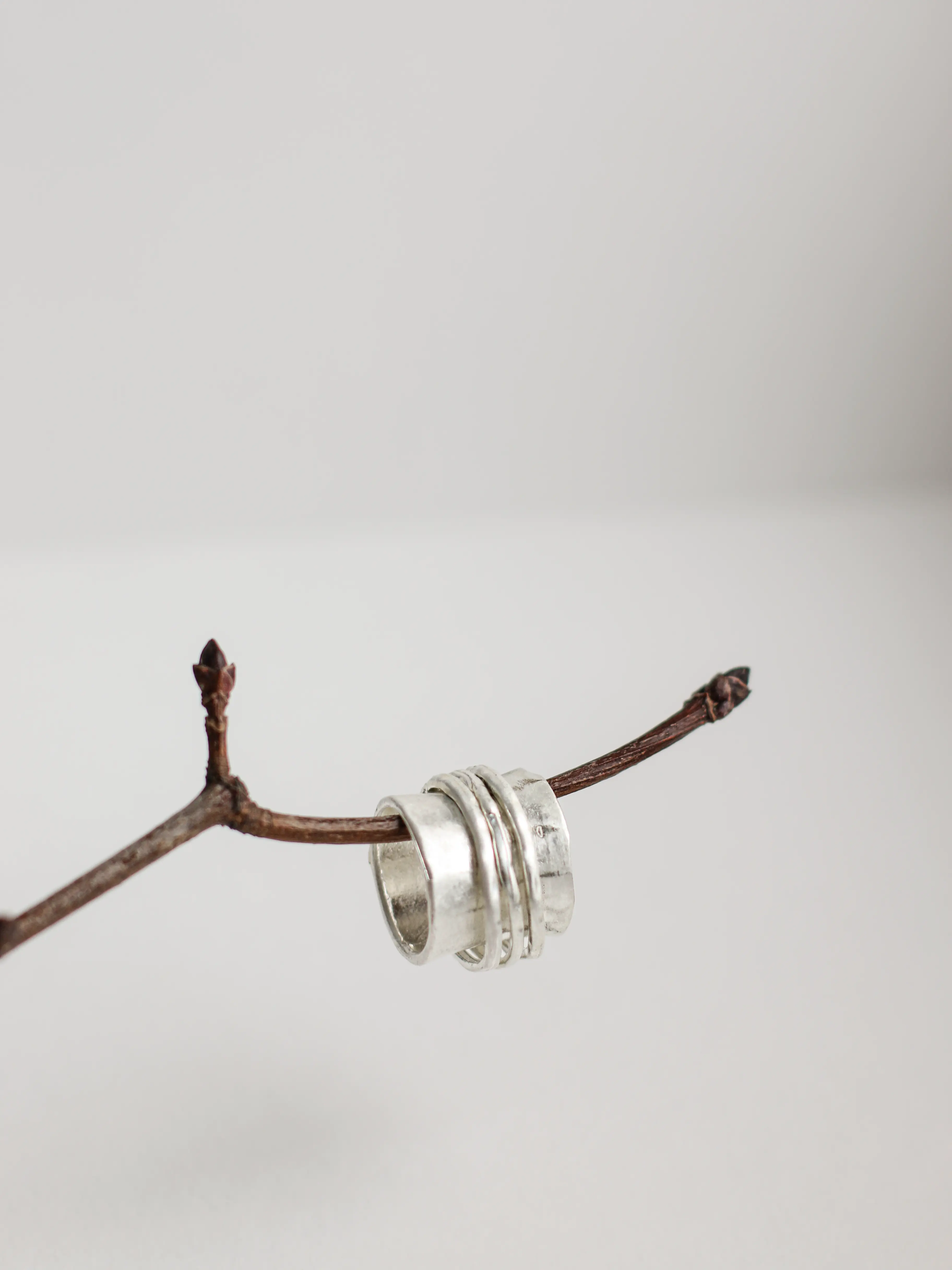 Кольцо Жулиа в матовом серебристом оттенке — элегантный минималистичный аксессуар, позволяющий эффектно расставить акценты в вашем образе. Благодаря продуманному дизайну крупное и достаточно широкое кольцо не кажется слишком массивным — наоборот, оно мягко облегает фалангу и подчеркивает изящные линии кисти. Подвижные декоративные колечки, закрепленные поверх монолитной основы, создают динамичный эффект и формируют красивые блики. Носите такое украшение соло или сочетайте с другими аксессуарами от Mi Alegria, чтобы сделать свой образ еще более выразительным.
